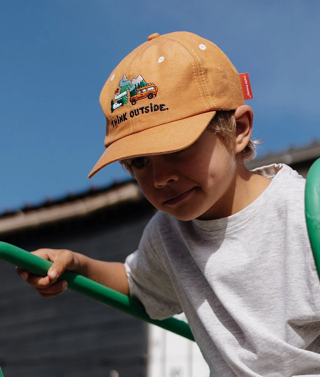 La Casquette pour enfants et bébés, Outside, est une casquette en lin et coton. Casquette légère, casquette respirante, casquette souple, parfaite pour les enfants, dès 9 mois. Attache en coton à l'arrière. Édition limitée, à ne pas rater !